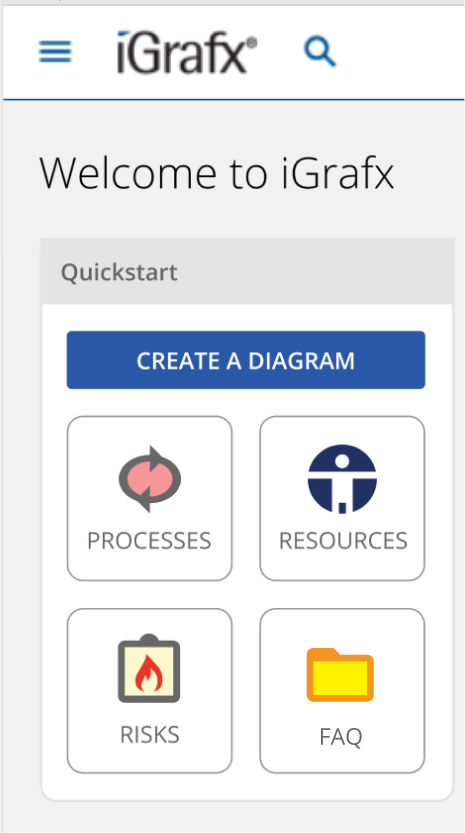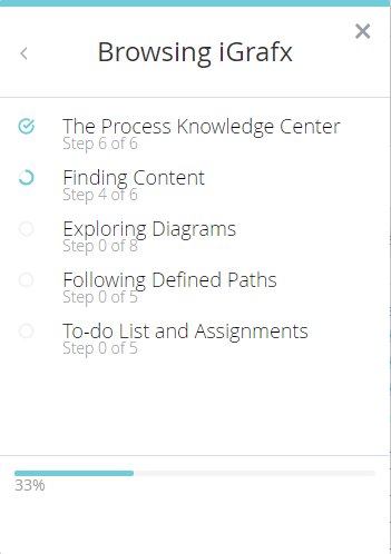 New to the Info Center is a series of guides that familiarize users with iGrafx as the hub for their process knowledge. The guides detail different methods of finding content, reading diagrams, understanding their organization's architecture, and demonstrating advanced tools and tricks.