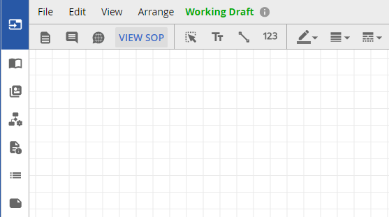 The new View SOP (Standard Operating Procedure) button in the diagramming area shows diagram-level process data through a designed report. This data tool is intended to show pared down information like the process summary, purpose, instructions, etc. so users can quickly understand the context of the diagram they are reviewing.