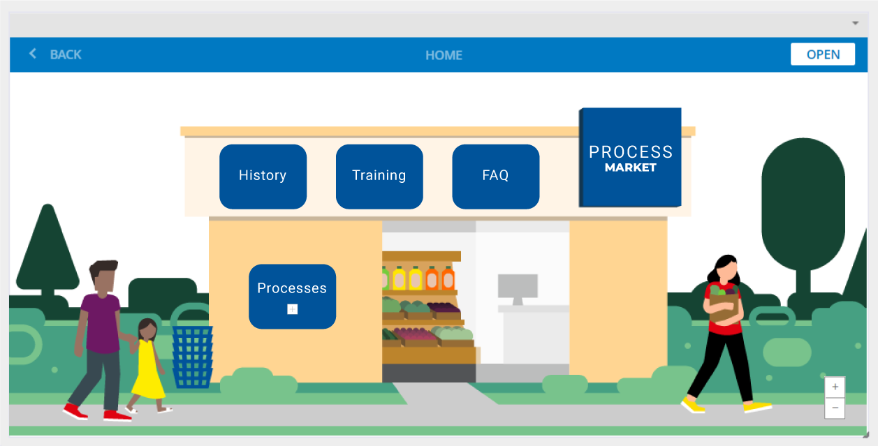 Display navigational diagrams from the Dashboard area with a new, highly configurable diagram gadget. This is a great way to provide a process house to coworkers by linking diagrams to other diagrams. Navigate easily between sub-processes with the navigation bar. Step back, return to the top level with "Home" and click "Open" to review the full diagram. Configure gadgets to show or hide linked objects for either a streamlined or comprehensive view of processes.