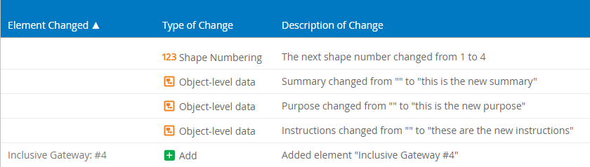 Now you can see the Object-level data, Summary, Purpose, Instructions and Custom Properties, included in the version coparison.