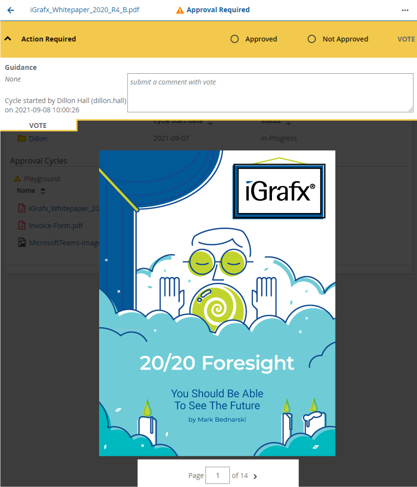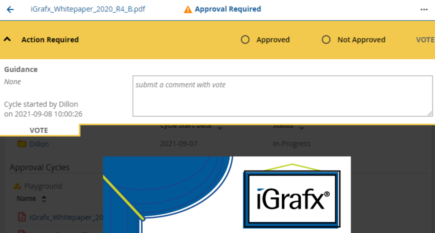 New voting UI on external file previews lets users know they have to participate in a cycle. Users can see what cycle is in-progress and gives them the opportunity to vote and comment without having to navigate away from the file. Cycles are no longer interactions to search for but are now conveniently presented.
