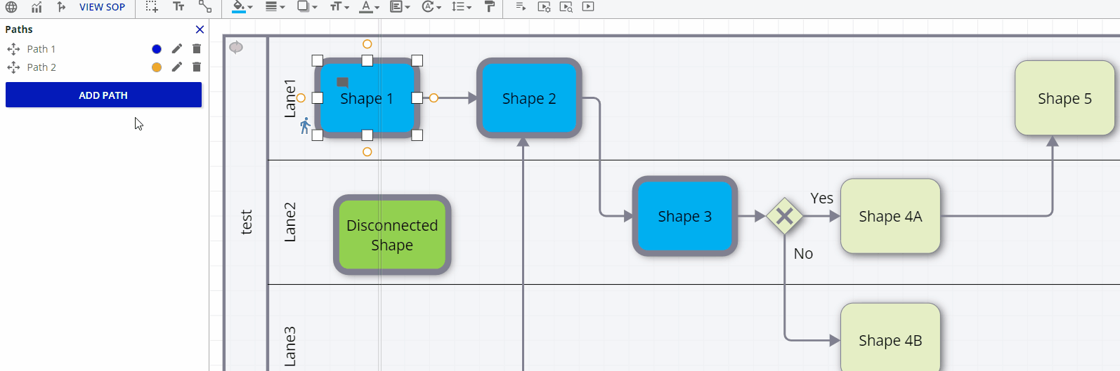 Diagram elements not included in paths are faded out, and dashed lines to disconnected shapes can now be removed