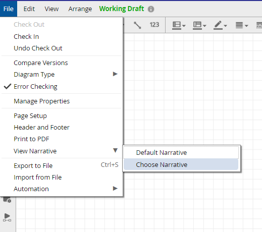 This will open your narrative report in a new tab which includes the new shape and diagram-level Work Product Flow data