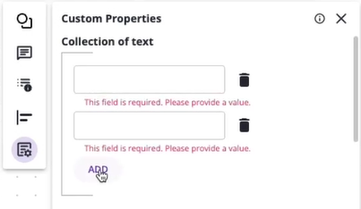 The custom properties panel in diagrams has several minor visual updates associated with updating the underlying technology for this panel. No changes in functionality. The “Collection of text” property type has the largest visual change.
