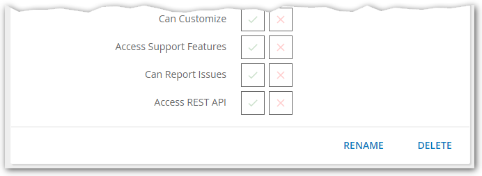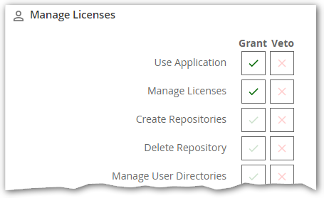 For example, for a new "Manage Licenses" role, two permissions are granted: