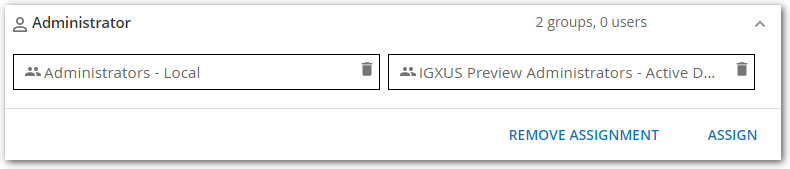 To remove all role assignments click REMOVE ASSIGNMENT and click REMOVE ASSIGNMENT again to confirm.