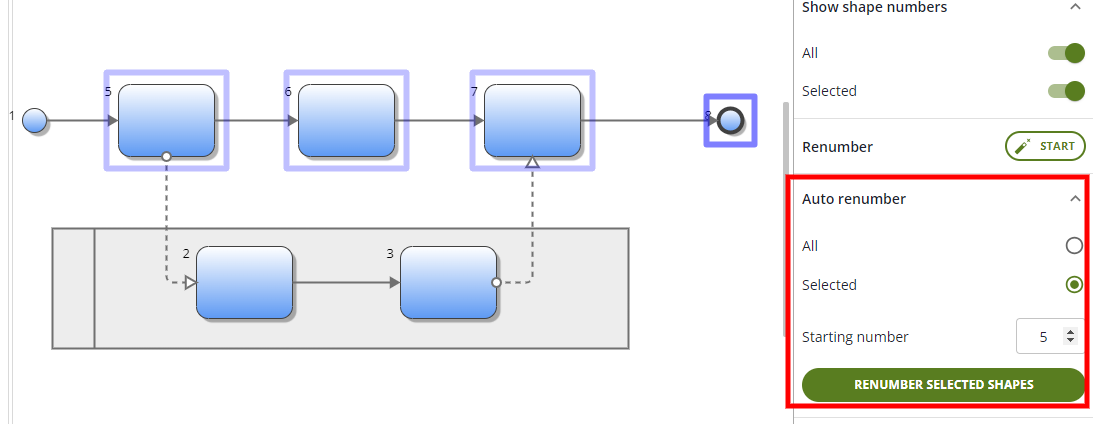 - After selecting the desired options, click the Renumber button to automatically renumber your shapes