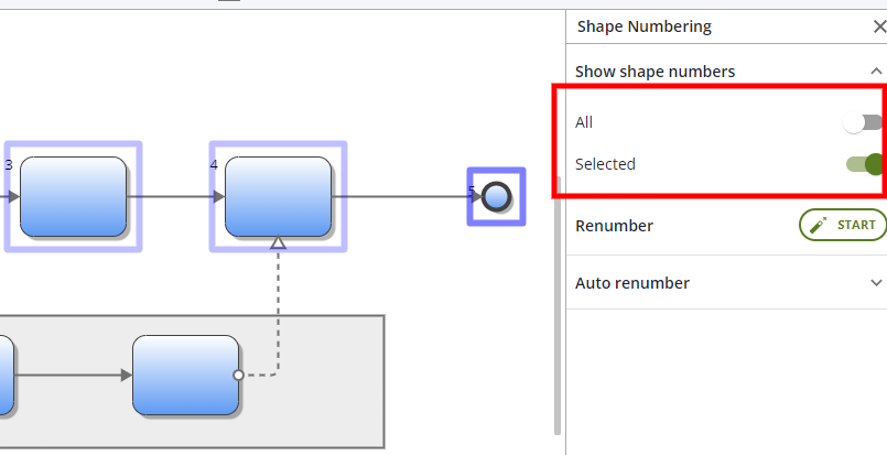 - Click to expand the Auto renumber section of the Shape Numbering panel