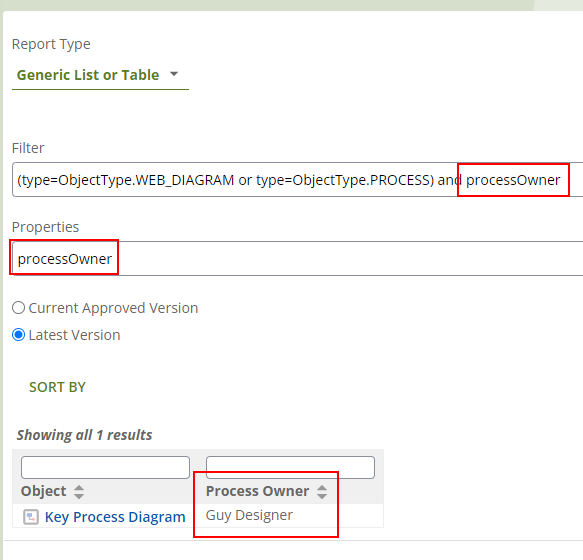 - Reports have access to processOwner as a filter and property. (The email for the user is not available within reports, however.)