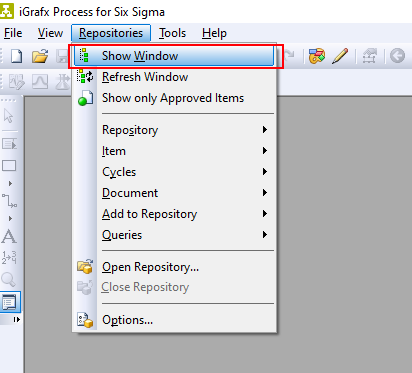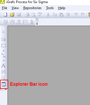 The repository is currently collapsed. To see the tree again, please click on the Explorer Bar to open it. Alternatively, select Repositories from the menu and click Show Window.