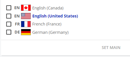One language will always be designated as the main language. Its text label will be in bold color to identify it.