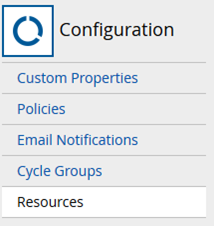 - Go to the Configuration area, and click Resources: