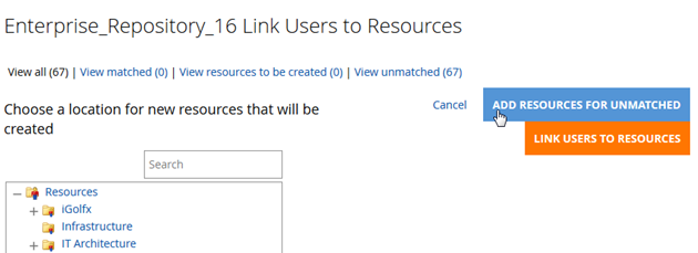 - Click ‘Add Resources for Unmatched’ button: