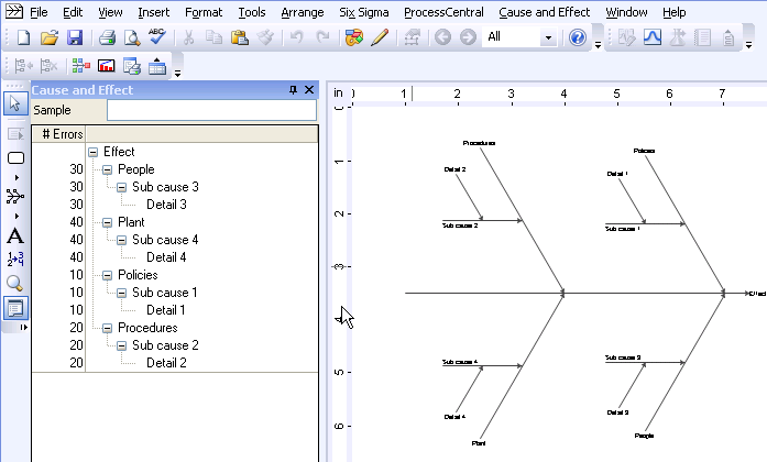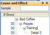 Insert a Pareto Chart based on the number of Errors. To do so, on the CauseandEffect menu, choose Insert ParetoChart.