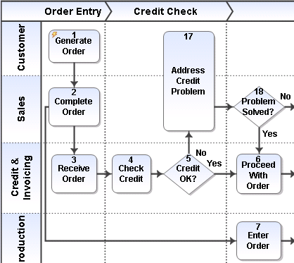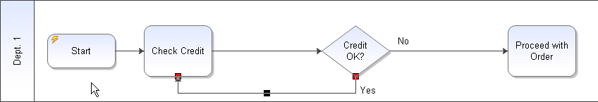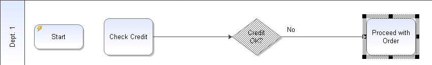 You now have three swimlanes: Dept. 1, Credit, and Sales.