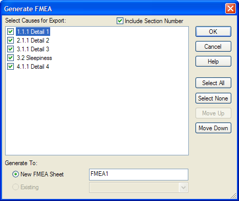 From the CauseandEffect menu, choose ExporttoFMEASheet.