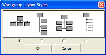 In the OrgChart Builder dialog box, click the Workgroup Layout Styles tool: