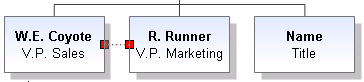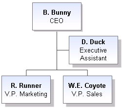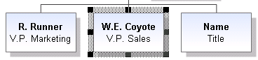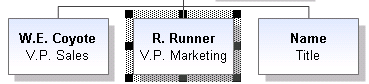 Add subordinate shapes and give them the names and titles R. Runner, V.P. Marketing and W.E. Coyote, V.P. Sales.