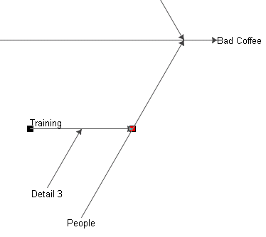 In addition to using the Cause and Effect window to edit the CE diagram elements, you may manually edit the CE diagram. Please note that any manual edits to the CE diagram automatically update the Cause and Effect window.