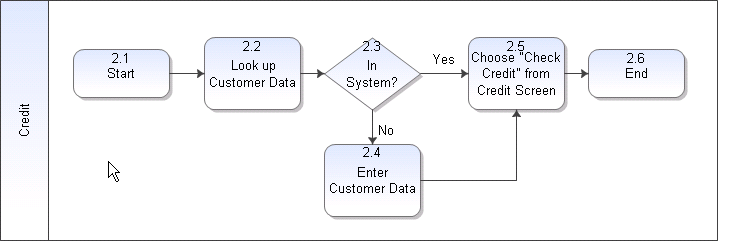 Click and hold the mouse button and drag to the inside of the left side of the CheckCredit shape.