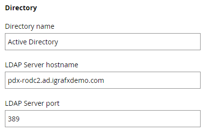 When you setup a connection to more than one directory in iGrafx you should give every directory a prefix to separate their namespaces. If you started with one directory and have to add an additional directory later the users from the first directory most likely have to use a prefix and the ones of the additional directories will have a prefix requirement.