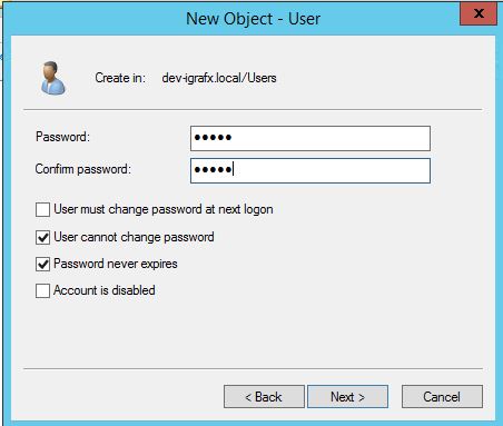 If you don't already have one, the first step is to create a user on the domain controller or Kerberos server, and give it an appropriate name such as webapp. Make sure a policy accepted password is used. For this example, and those that follow, let's say it's w3b@pp550(). Also make sure that the password doesn't expire, or need changing on next logon.