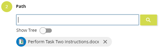 In the Path field, type the (partial) name of any Word document stored in your repository. For example, if the repository contained a document named "Perform Task Two Instructions.docx", then typing "Perform" in the Path field will display the document name. Alternatively, you can click the Search icon to find the desired document.