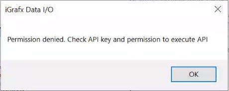 When trying to import or process data using iGrafx Data IO (IDIO), you may experience permission problems and see the following dialog: