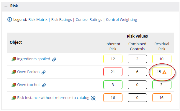 The expanded Risk section also displays details of how the Residual risk is calculated: