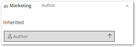 In this example, the screenshot shows that "Marketing" has the "Author" role based on an inherited role assignment on a parent object. Clicking the arrow will display the parent where the role assignment was made.