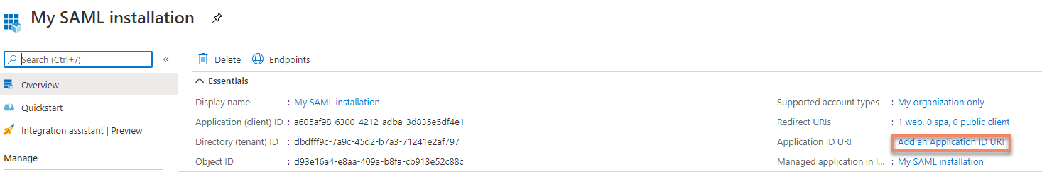 Add an Application ID URIon the right side