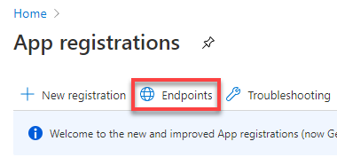 Endpointsin the App registrations header