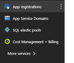 App Registrationservice in the left-hand panel. If it doesn't appear, use theMore servicesbutton to look for it (and possibly favorite it by clicking the star)