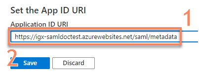 Application ID URIyou copied in the previous step into yourigrafx.propertiesas described belowCODEigrafx.usercentral.saml.entityId=YOUR_APP_ID_URI- Restart your iGrafx Platform service