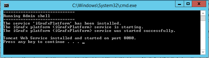 If you performed Step 3, proceed with this step, otherwise proceed to step 11. In the command line run "manage_service.bat iGrafxPlatform"
